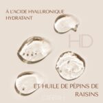 Concentré en acide hyaluronique et en huile de pépins de raisin riche en antioxydants, il nourrit en profondeur, améliore l’élasticité cutanée et offre un fini lumineux et professionnel, haute définition.